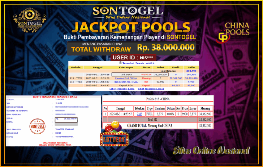 JP SONTOGEL PASARAN TOGEL CHINA Rp.38.000.000